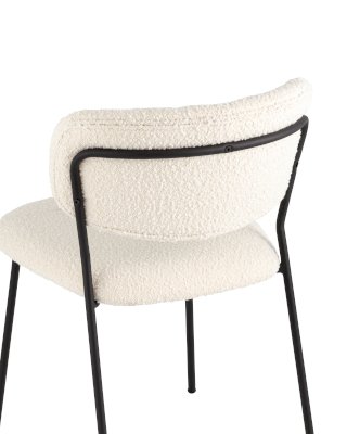 Современный обеденный стул без подлокотников и металлическими ножками. Обивка выполнена из мягкой и легкой ткани букле. Красивый и очень мягкий материал, который оставляет ощущение теплоты и уюта. Металлический каркас черного цвета огибает спинку и плавно переходит из подлокотников в ножки. Широкое сиденье обеспечивает удобную посадку и уют. На подлокотниках для дополнительного комфорта предусмотрены мягкие накладки.