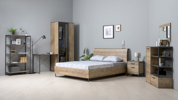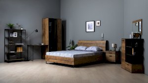 Металлические опоры делают эту мебель надёжной, аутентичной и функциональной. Лицевая фурнитура с тем же покрытием придаёт мебели индустриальную эстетику.