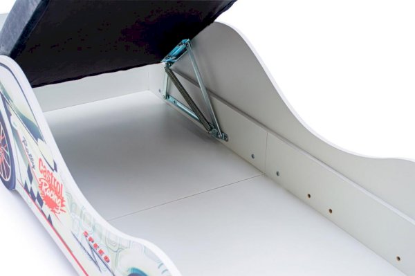 Каркас кровати выполнен из экологичного ЛДСП класса эмиссии Е1, соответствует всем стандартам качества и не имеет химического запаха. Все края кровати покрыты кромкой ПВХ 1 мм и безопасны для малышей.