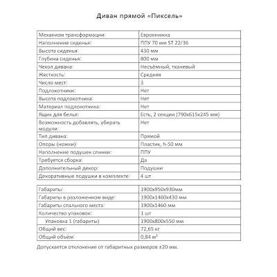 Диван Пиксель (Аквилон) - за 30 305 руб. в Нижнем Новгороде. Купите на сайте mebelmarket-nn.ru или по телефону 8(800)505-30-63 уже сегодня! Уточнить наличие, комплектацию, актуальную цену можно бесплатно у менеджера ежедневно. Закажите Диван Пиксель (Аквилон) до конца акции! Доступна покупка в кредит, рассрочку. Доставим со склада или на заказ.