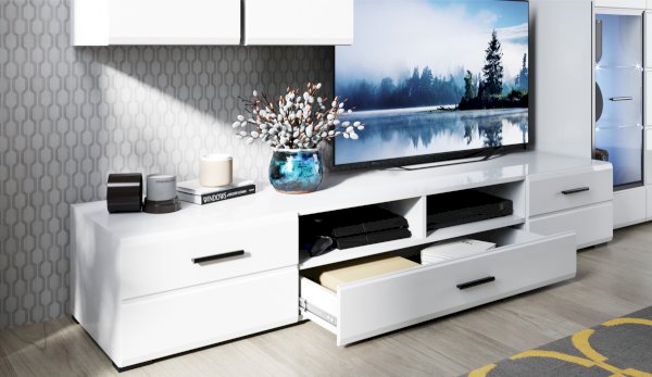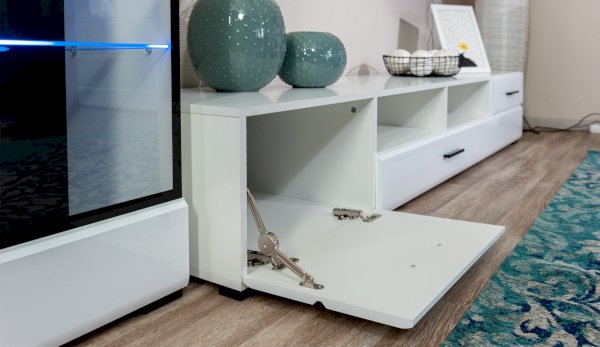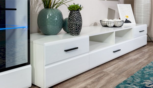 Модульная система Йорк позволяет подобрать тумбу для ТВ индивидуально, исходя из Ваших предпочтений, размеров телевизора и гостиной. Тумба оснащена всем необходимым для удобства использования, выдвижными ящиками на телескопических направляющих, открытыми и закрытыми полками для медиа техники, пультов и других необходимых вещей. Выполнена из экологически безопасных материалов.