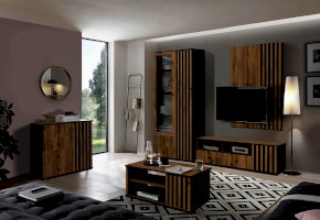 Комбинированный шкаф удачно сочетает в себе витрину, стеллаж и комод. Шкаф визуально разделен на две части. Левая – за стеклянной дверцей, которая обрамлена рамкой в цвет дерева. Правая часть – закрытая. Внутри, за дверцами, находятся полки из ЛДСП. Каждая выдерживает вес до 5 кг. За каждой дверцей – по 4 полки. Они разной ширины, так как левая часть, по традиции коллекции, шире, а правая – уже.