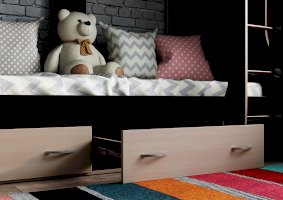 • Нижнее спальное место дополнено двумя выдвижными ящиками на роликовых направляющих