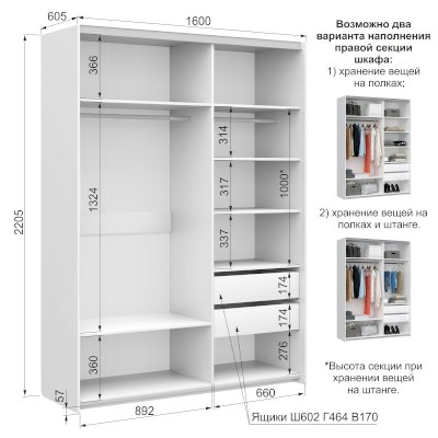 Наполнение шкафа выдвижные ящики / штанга