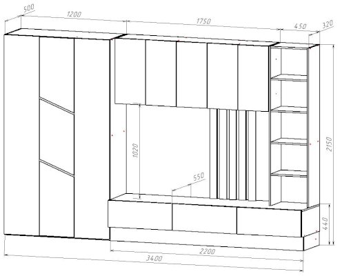 Размер ниши для ТВ: (ШхВ) 1750х1020 мм